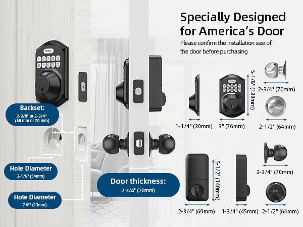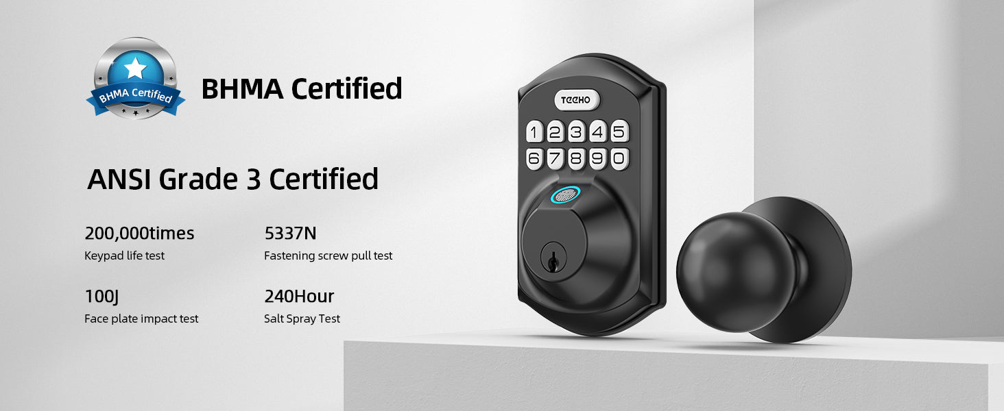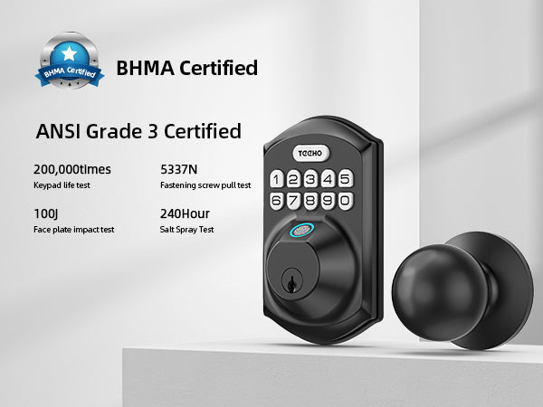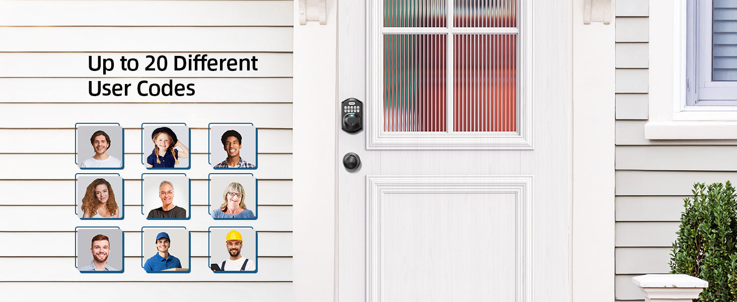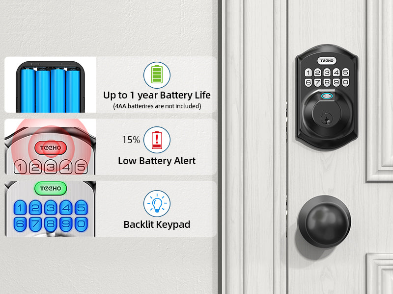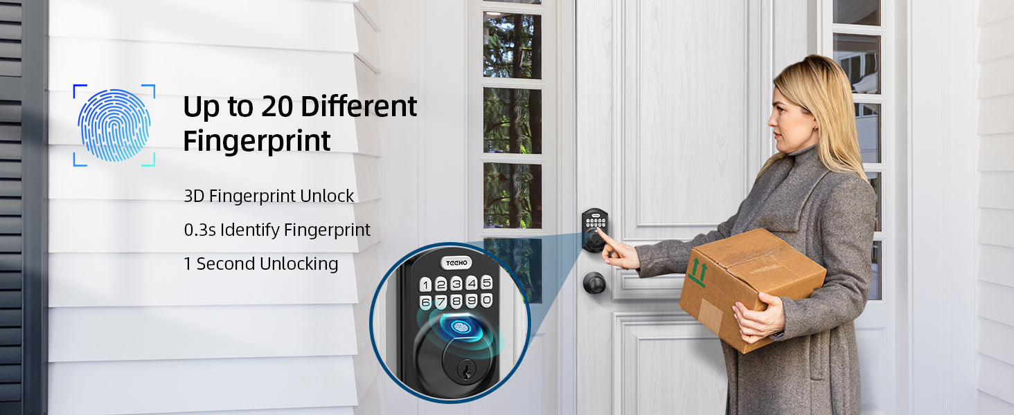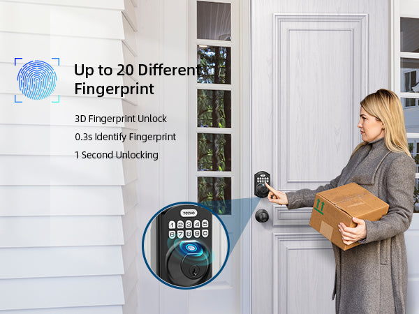 Auto Lock, Anti-peeping Password, Back-lit Keypad, Keyless Entry Door Lock with Keypads, One-touch Lock,IP54,Vacation Mode, Mute Mode,Up to 20 Fingerprints & PIN Codes Unlock