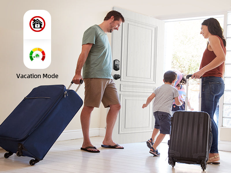 When you go out enjoy your holiday, you could enable the vacation mode.It won't be able to be unlocked with user codes or one-time code, and it will alert if anyone trys to unlock both from outside and inside.The power consumption is too little to count in vacation mode.