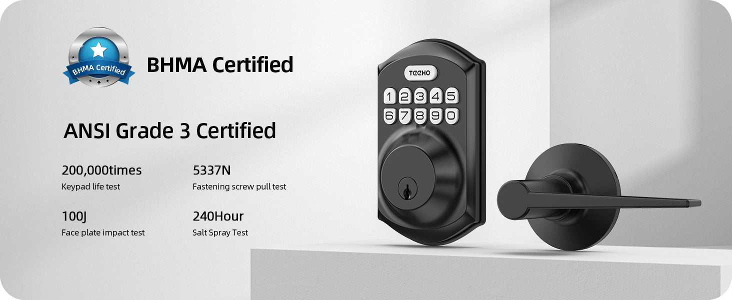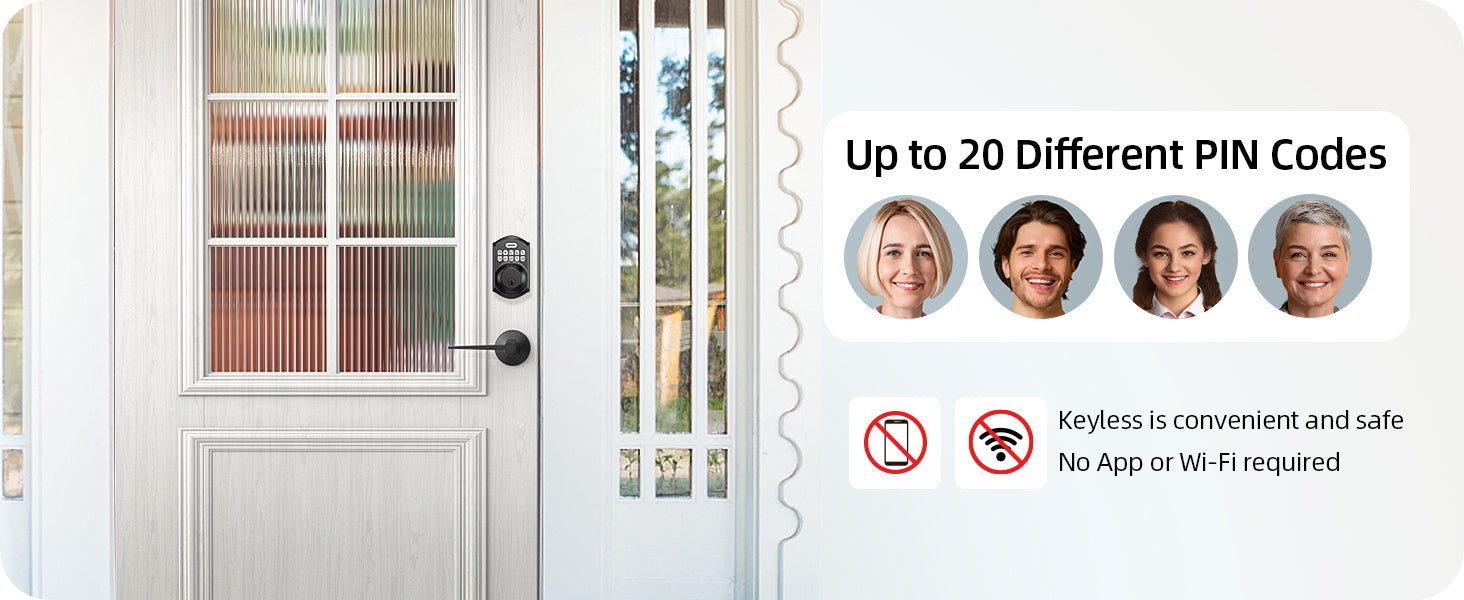 This keypad lock isIP54 waterproofand operates well in temperatures from-22 °F to 158 °F, keeping your home safe in all kinds of climates, including cold winters, hot summers or rainy days.