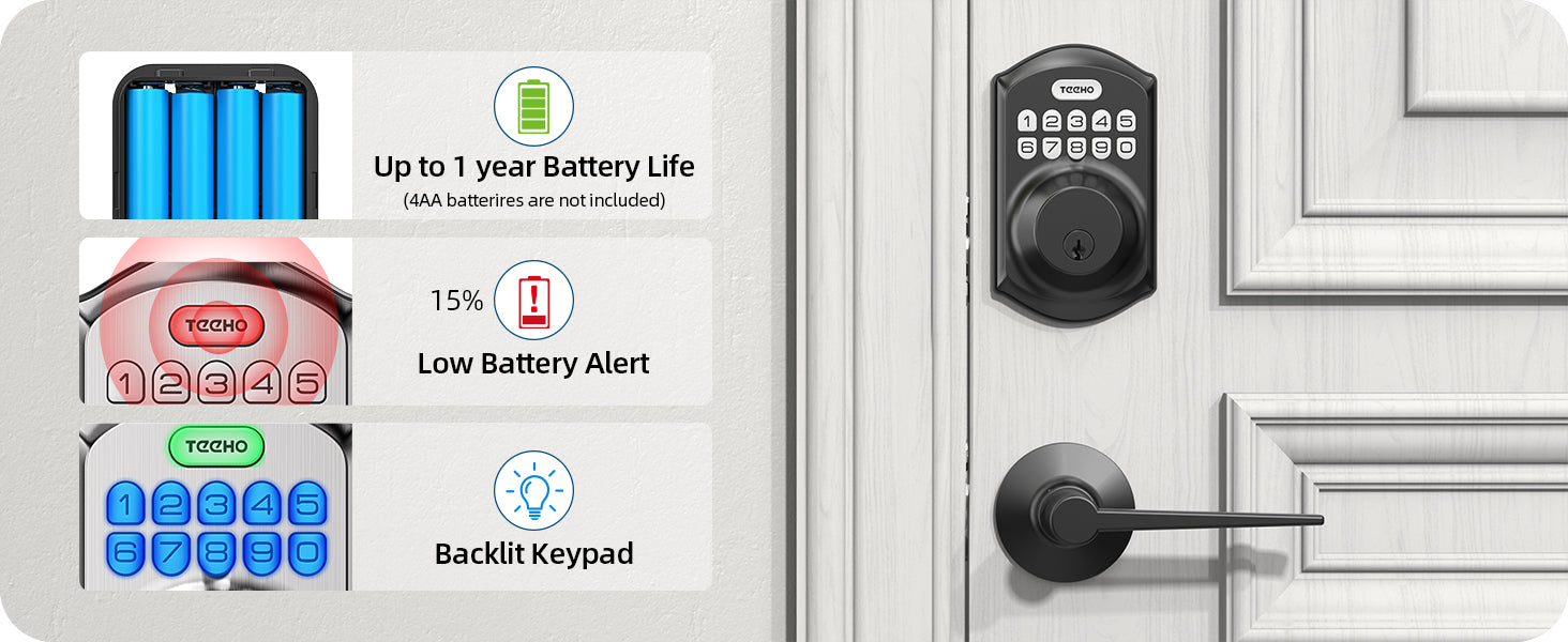 TEEHO TE001L Keyless Entry Door Lock with 2 Handles