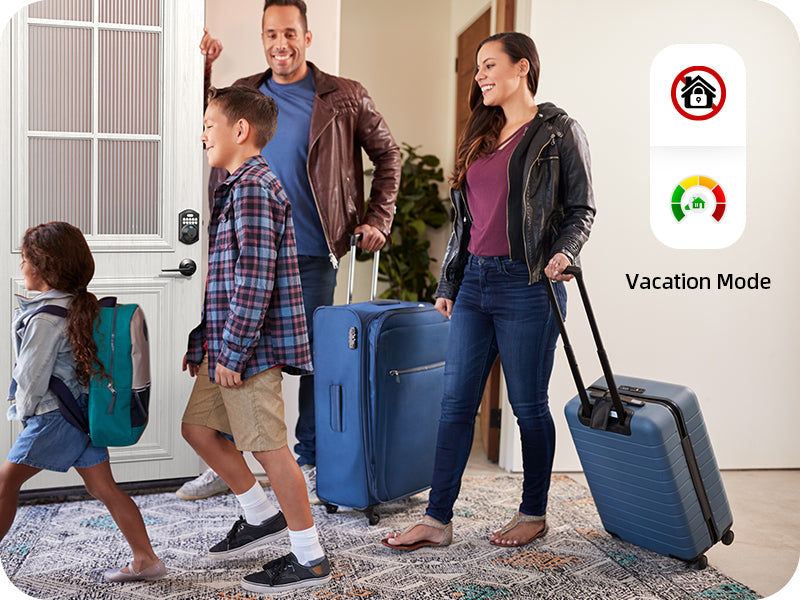 When you go out enjoy your holiday, you could enable the vacation mode.It won't be able to be unlocked with user codes or one-time code, and it will alert if anyone trys to unlock both from outside and inside.The power consumption is too little to count in vacation mode.